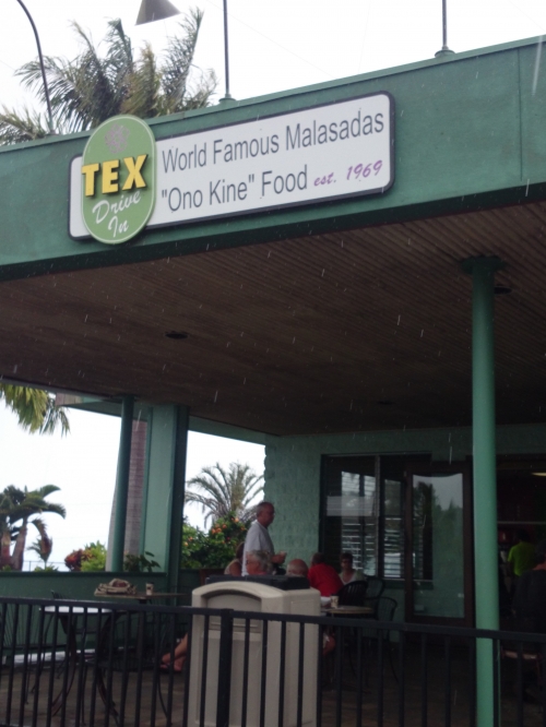 ハワイ島北側をドライブするときの休憩に便利なのが、ホノカアタウンの玄関口にあるテックス・ドライブインです。ワイピオ渓谷からは車で20分ほどです。