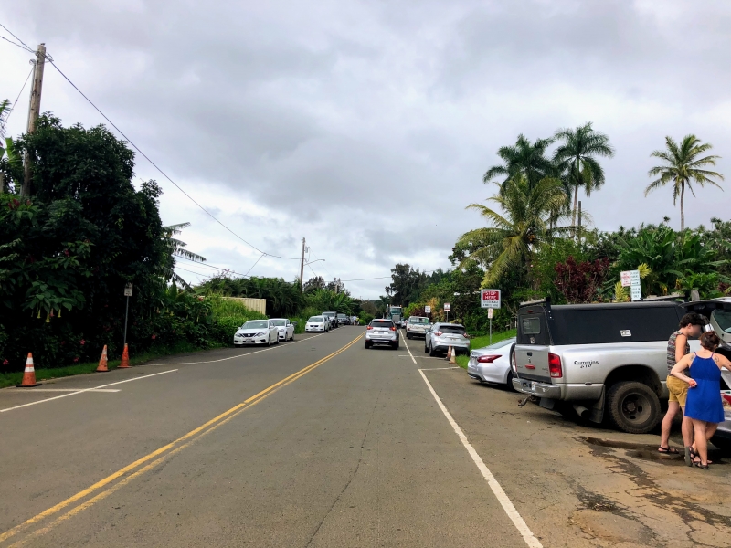 まずはレンタカーを使いホノカアの町を抜け、国道240号線でワイピオ渓谷展望台(*地図A)の駐車場までアクセスします。展望台には専用駐車場がありますが、規模が小さいため満車であることが多いです。