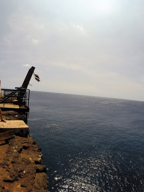 サウスポイントには、崖からの飛び込み台も設置されています。筆者が訪れたときも数人の人が飛び込んでいました。勇気ある人はチャレンジしてみてください。人生観が変わるかもしれません!