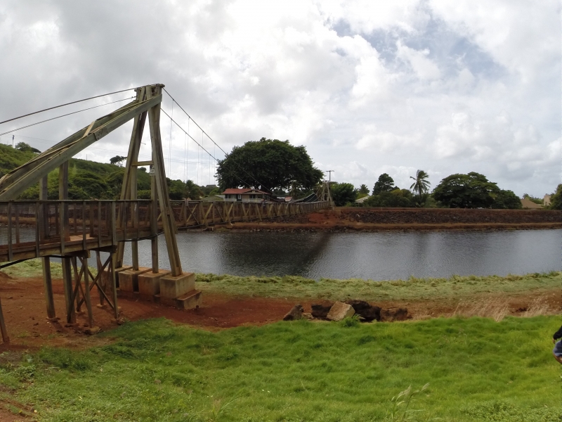 山に雨が多いと川が自然と多くなります。カウアイ島はいたるところに川が流れており、必然的に橋も多くなります。人がやっと通れるほどのつり橋も多く残っており、ノスタルジックな雰囲気を楽しめます。