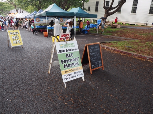 場所はダイヤモンドヘッド近くの大学KCC(カピオラニ・コミュニティ・カレッジ)の駐車場。土曜の朝市と火曜の夜市の週2回開催されています。