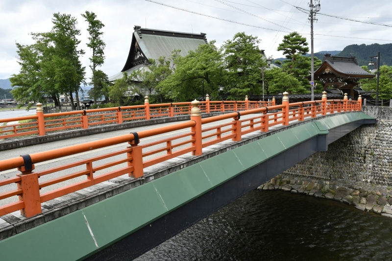 荒城川の霞橋近くにあるお寺です。真宗寺と同じく、「三寺まいり」でお参りするお寺のひとつ。飛騨最大の木造建築である総ひのき造りの本堂が一番の見どころですが、飛騨随一といわれる山門も見応えがあります。
