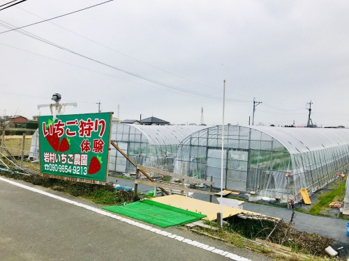 道の駅竜北の裏側・田んぼがある方面へまっすぐ進み、突き当りを左に曲がると、ビニールハウスと岩村苺農園の看板が見えるので、それが目印です。