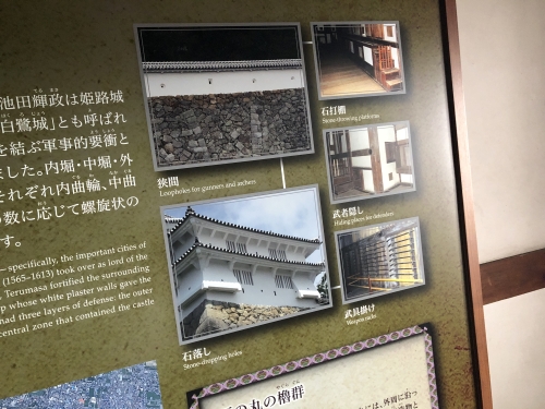 中に入れるので、靴を脱いで入ってみましょう。侍女たちがたくさん居たのであろう小部屋では、姫路城の様々な解説を見ることができます。先にご紹介した「姫路城トリビアン」の内容と、ほぼかぶっています。