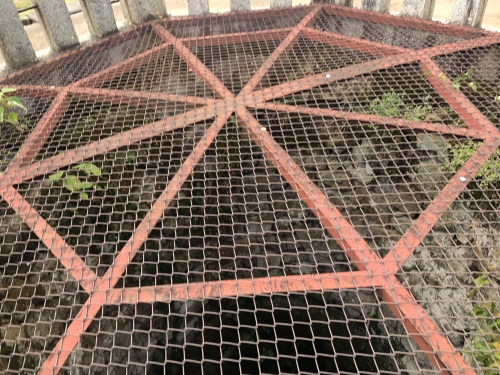 最初の 菱の門 をくぐると、突如現れるのが 三国堀。この池は湧水でできているのですが、なぜこんなところに池が? そこには敵を誘い出す工夫があります。