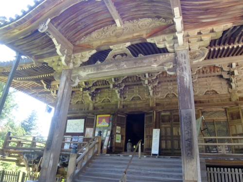 現在のお堂は、昭和8年に再建された比較的新しいものですが、舞台造の非常に美しい建物で、国の登録有形文化財にも登録されています。本尊の六臂如意輪観世音菩薩は秘仏で、毎年1月18日に行われる鬼追いの日にのみ開帳されます。