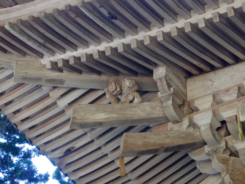 この開山堂の軒下を見上げると、まるで屋根を支えるようにふんばる力士像が・・・