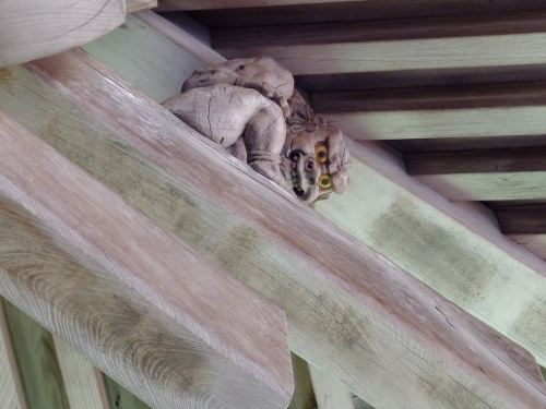 こちらの像は、日光東照宮の眠り猫の作者としても有名な左甚五郎作と伝わっています。四隅のうち西北隅の一つは重みに耐えかねて逃げ出した、という伝説があります。