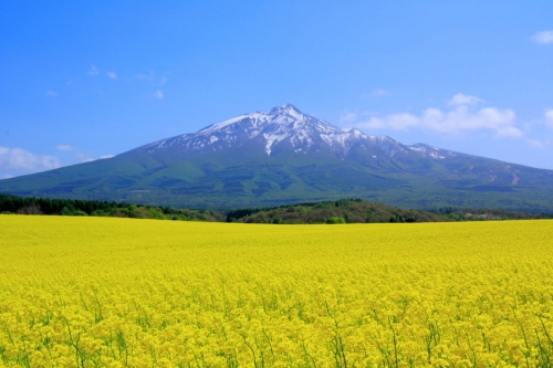 標高1625mの岩木山は青森県で最も高い山。”津軽富士”とも称される美しさは、「日本百名山」「新日本百名山」に選ばれています。平野に咲く黄色の絨毯「菜の花」や「さくら」を借景にした景観も見どころで、四季折々さまざまな表情で楽しませてくれます。