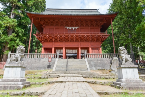 江戸時代初期に造られた本殿、拝殿、奥門、楼門などが重要文化財として指定を受ける由緒ある神社。780年に岩木山(いわきやま)山頂に社殿を造営したのが起源とされ、現在も岩木山山頂に「奥宮」があり、4時間強の登山をすればお参りできます。神社の参道は岩木山の登山道のひとつとなっています。