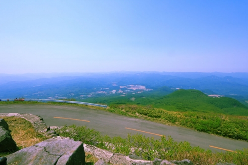 岩木山の8合目まで続く、全長9.8kmの有料道路「岩木山スカイライン」。カーブが69か所も続く難所ですが、スカイラインを登りきった先には、津軽半島や七里長浜などを見渡す絶景が待っています。駐車場には、お土産売り場や自動販売機、休憩コーナーも用意されているので、一息つきながら絶景を堪能してみて。