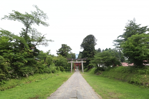 敷地内に入ると、まずは長い参道を歩きます。五本杉など御神木もありますので両脇に注目してみて下さい。