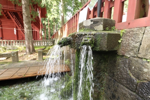 長い参道で渡った橋の下には綺麗な清流が流れていましたが、実はその出どころが手水舎から湧き出ている湧き水なのです。