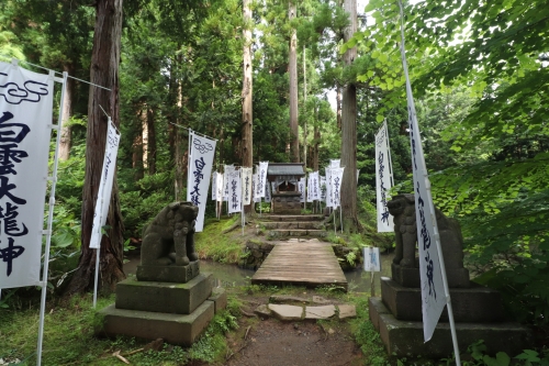 同敷地内にある龍神様を祀った神社です。ここへ行くまでに岩木山神社の本殿を見ることができます。山のなかにすっぽりと覆われた雰囲気を楽しめます。