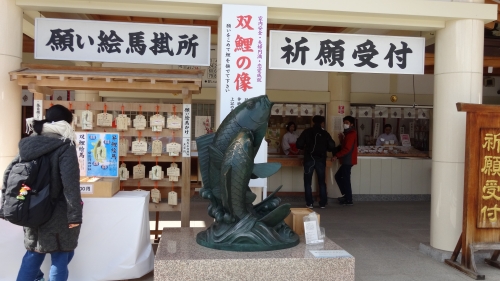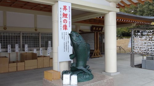 見どころは本殿近くにある二体の鯉の銅像。「双鯉(そうり)の像」は、家内安全や夫婦円満、恋愛成就に、「昇鯉(しょうり)の像」は、難関突破や目標達成、開運出世などにご利益があります。運気を上げたい方はぜひ二体の鯉の銅像を撫でてみて。