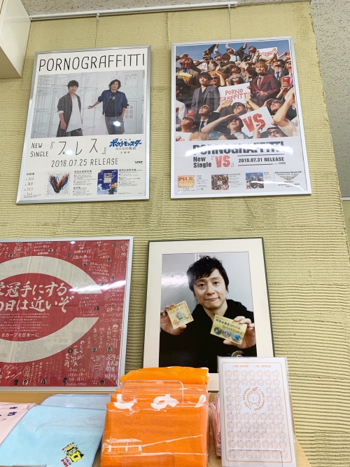 更に、ポルノグラフィティに関する記事や写真、直近のシングル曲のポスター等が掲示されています。掲示物は自由に撮影して大丈夫です。