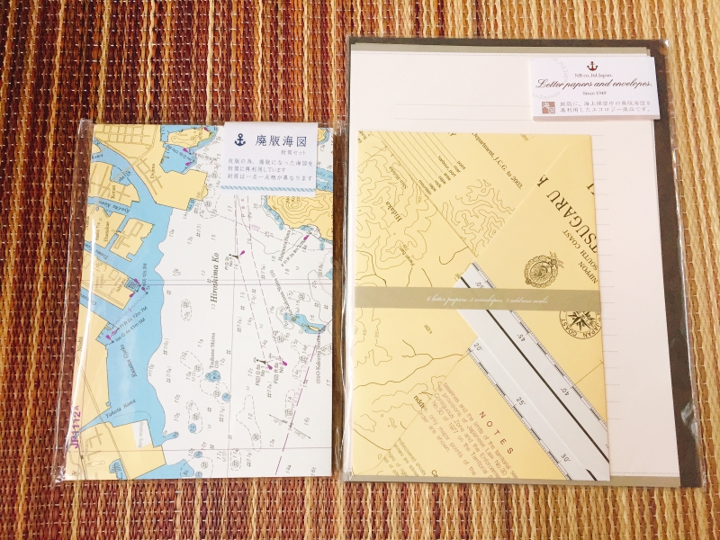 こちらは普通のレターセットではなく、海上保安庁の廃版になった海図を封筒に再利用しており、封筒の柄が一つ一つ異なるのです。