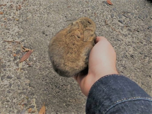 島は1時間ほどで1周でき、その間に野生のかわいいうさぎに、会い放題&触り放題&エサやり放題&写真撮り放題という、ウサギ好きにはたまらない島です。