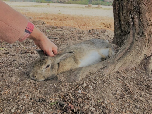 毒ガス開発中、その実験対象とされていたのがウサギさんです。しかし、毒ガスの開発も終わった後は、そのウサギさんたちは野放しにされました。そのウサギが野生動物として生息し、現在、約700羽のウサギが自由に住んでいるというわけなのです。