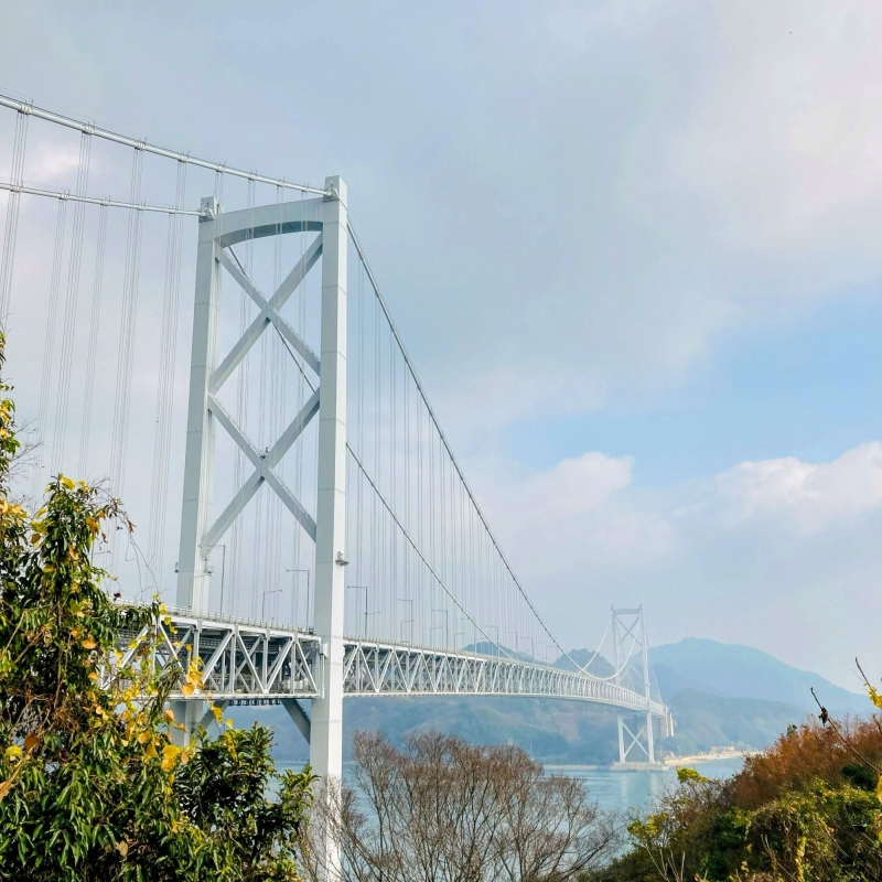向島と因島を結ぶ、海抜50m、全長1,270mの橋。”しまなみ海道”を構成する橋梁のひとつで、尾道側からは2番目に渡る橋になります。橋は2層構造になっており、上が自動車道、下が徒歩や自転車で通行が可能。絶景を眺めながら爽快なサイクリングが楽しめます。