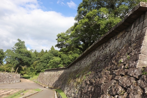 人吉城は、鎌倉時代のはじめ人吉の地頭として着任した相良長頼(ながより)が築城したと伝えられています。1589年、20代相良長毎(ながつね)が石垣づくりの城として大改修しました。官軍との戦いの際、薩摩軍は三の丸辺りに大砲を持ち上げ、北側の官軍砲台が置かれた村山台地を攻撃しました。