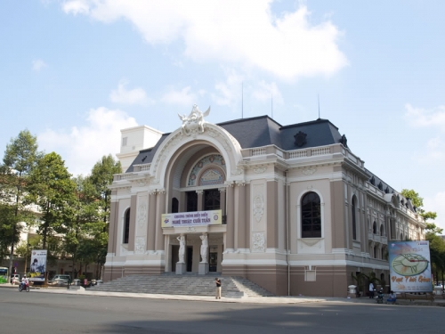 19世紀末にオペラハウスとして建てられ、南ベトナム政権時代は国会議事堂として使用されていました。現在は、オーケストラやバレエ、サーカスなどの公演を行っています。チケットのない方は内部への入場はできませんが、建物の外見だけでも見応えがあり、絶好の写真撮影スポットですよ。ドンコイのほぼ中央にあるので、買い物や食事のついでに寄ってみるのもいいですね。夜のライトアップされた姿も見どころです。