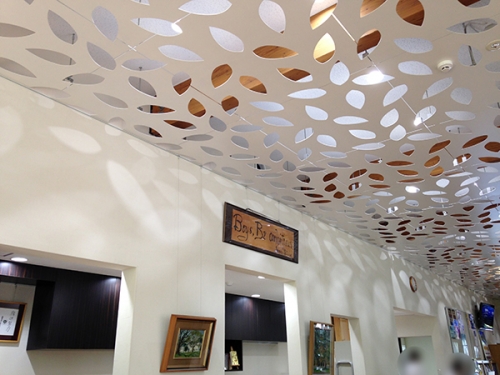 • 写真:トラベルライター木の葉模様のインフォメーションセンター 「エルムの森」の天井