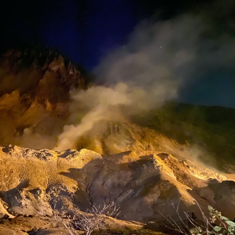 硫黄の臭気とともに、至るところから白い湯気をあげながら煮えたぎる殺伐とした荒涼な大地は、まさに地獄のよう。1周20分ほどの遊歩道があり散策が楽しめますよ。