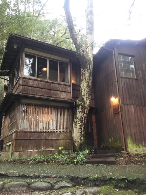 鶴仙渓の入口付近の、森の中にたたずむカフェ。フランス語で「幸せの時間」を意味する店名が付けられていて、2階の窓際の席からは、森を眺めながら心落ち着く時間を過ごすことができます。メニューは、コーヒーや紅茶、生搾りジュースなどのドリンクをはじめ、ナッツとドライフルーツが詰まった「森のケーキ」などのスイーツも揃っています。