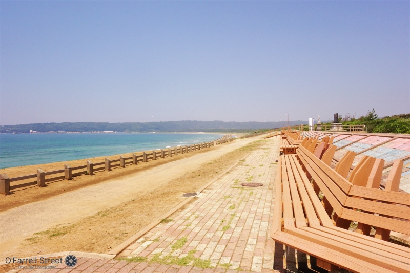 増穂浦海岸に設置されている、全長460.9メートルのベンチです。約1,350人も座れる木製の長いベンチは、平成元年(1989年)に”世界一長いベンチ”としてギネスに認定されています。