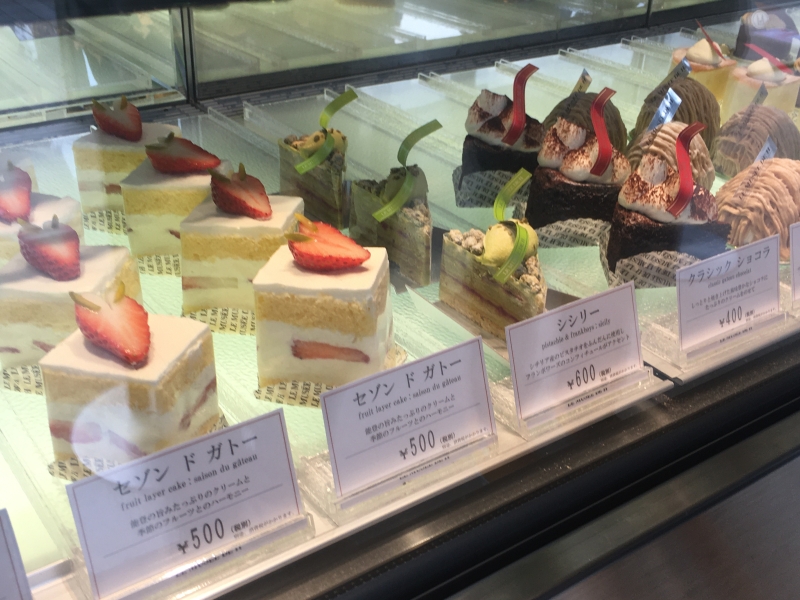 出典:tripnote.jpパティスリー「ル ミュゼ・ドゥ・アッシュ」の洗練されたケーキが並ぶ