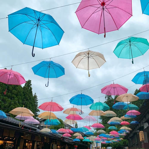 また、例年3月上旬~11月下旬にかけ「アンブレラスカイ」を行なっており、古民家とカラフルな傘のコラボレーションが絵になりますよ。