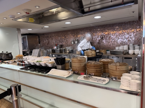 1Fにあるスカイシティ・ビストロで朝ごはんのビュッフェがあるんです。洋食はもちろん、麺や具材が選べるヌードルは是非食べたい一品。身体に優しいスープは朝食にぴったり。また、作りたての焼売や海老蒸し餃子、焼豚饅も頂けるので、本場香港の味を楽しみましょう。