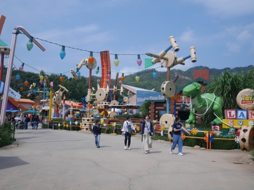 香港のディズニーランドを象徴するエリアが、映画『トイ・ストーリー』をテーマにしたエリア、「トイ・ストーリー・ランド」です。日本にはないエリアで、アトラクションは3つ、更にグリーティングスポットやお土産屋さんなどがあり、まさに映画の世界にいるかのよう。