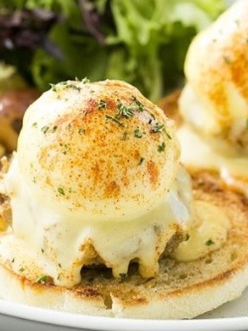 湯気を立てるポーチドエッグにナイフを入れると、とろ~りとした黄身が流れ出してきます!軽い食感に焼き上げられたマフィンにからめていただきましょう。クリーミーなオランデーズ・ソースとの相性もバッチリです。