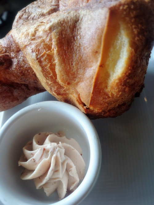 食事の前に運ばれてくるポップオーバー(パンの一種)は、マリポサの名物でもあります。厚めのシュー皮のような生地で軽いため、延々と食べられてしまいます。ストロベリーバターとの相性も抜群です!おかわり自由なので、メイン料理の前に食べ過ぎないように注意してくださいね。