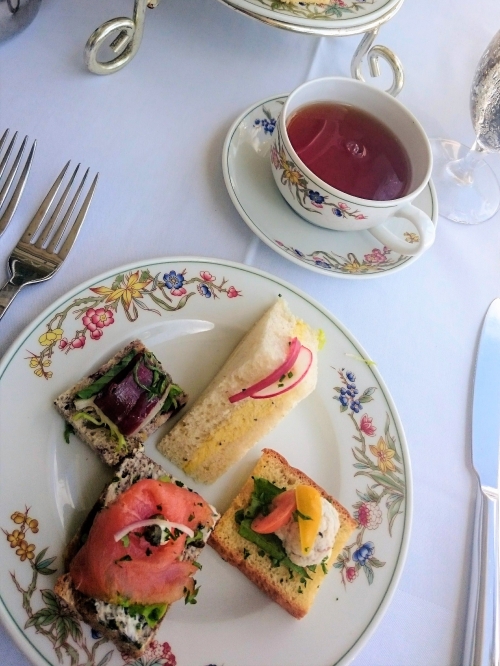 一口サイズのフィンガーサンドやサラダ、スイーツも最初にすべてスタッフさんが一つ一つ丁寧に説明してくれます。目の前に置かれるとすぐに食べたくなってしまいますが、説明を聞きながらぜひ目と耳でも楽しんでくださいね。