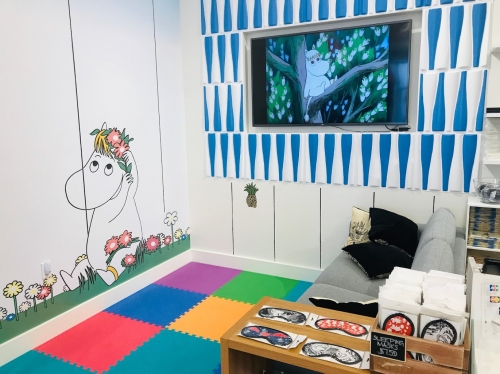 ムーミンショップハワイはアラモアナセンター3階・エヴァウィングエリアにあります。お店に入る前からワクワクがとまらない外観です。