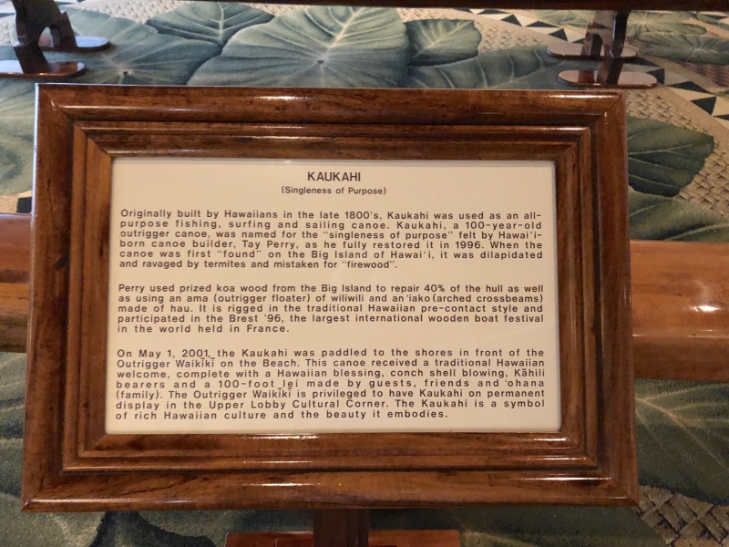 そのカウンターのすぐ横には、大きなカヌーが。実は筆者は初めてここで「アウトリガー Outrigger」という言葉の意味 を知りました。