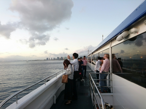 乗船場に到着すると、すぐに乗船です。「5スター・ディナー・クルーズ」の会場は、船の最上階である4階のプライベートフロアです。