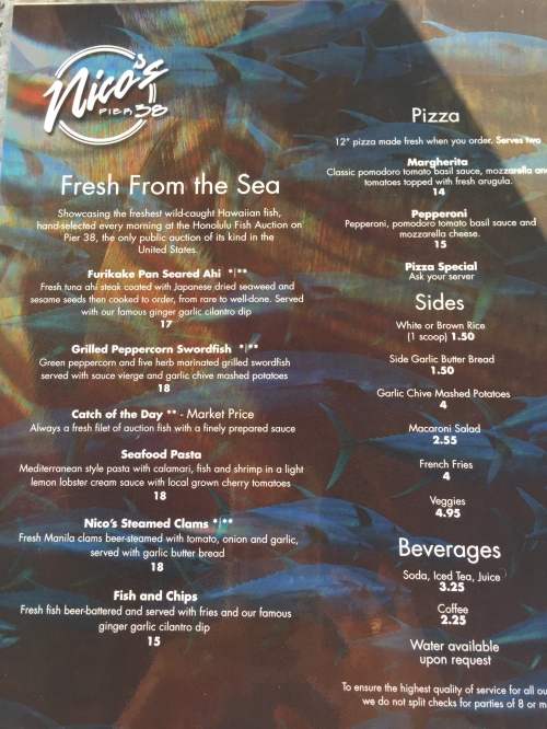 ホノルル埠頭の魚市場の近くにあるオープンエアーのレストランです。広い店内は天井が高くテーブルとテーブルの間隔が空いていて、ゆったりとしています。また、テラス席は目の前の港を眺めながらゆっくり食事ができます。