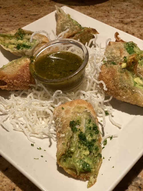 おすすめは、前菜ではアボカドをトルティーヤの皮で包み油で揚げたアボカド・エッグロール($17,95)。アボカドがたっぷり入って止まらなくなる美味しさ。スパイシーなディップを付けて頂きましょう。