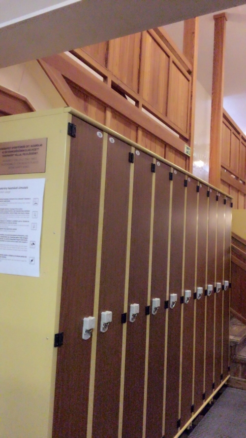セーチェニ温泉は男女混浴なので、水着を着用して入ります。なんと、ロッカールームも男女混合!しかし鍵がかかる着替えをするための個室があり、そこで水着に着替えられるのでご安心ください。