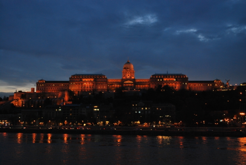 まずは川沿いを散歩、対岸から夕日のブダ城を眺める