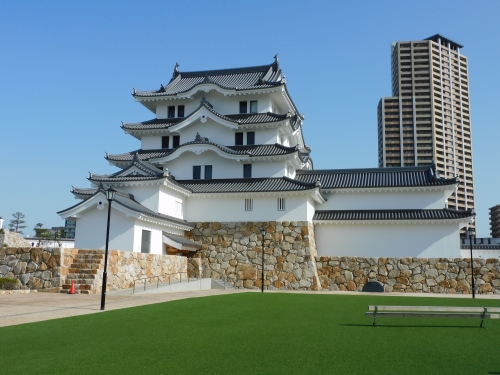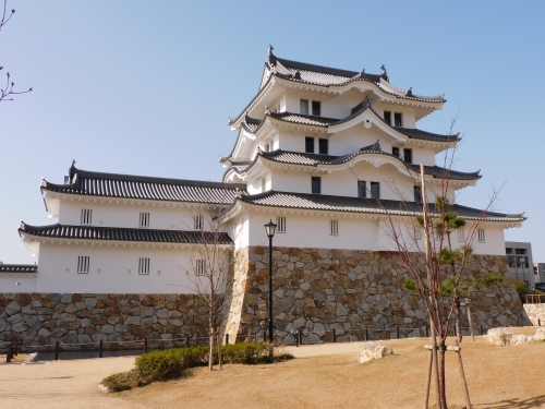 1617年に築城された平城で、1873年(明治6年)の廃城令によって取り壊されましたが、2018年(平成30年)に城跡公園に天守閣の外観が復元され、2019年から場内が一般に公開されました。