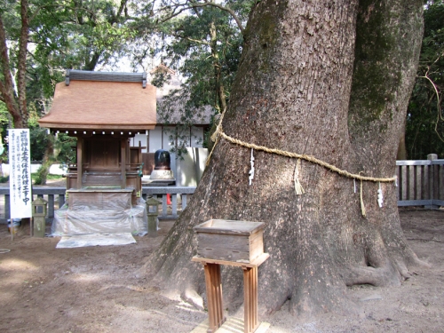 御神木の「夫婦大楠」は、元は2本だった楠が成長するにつれ1本になったことから、夫婦円満や安産子授、縁結びなどのご利益があると言われています。