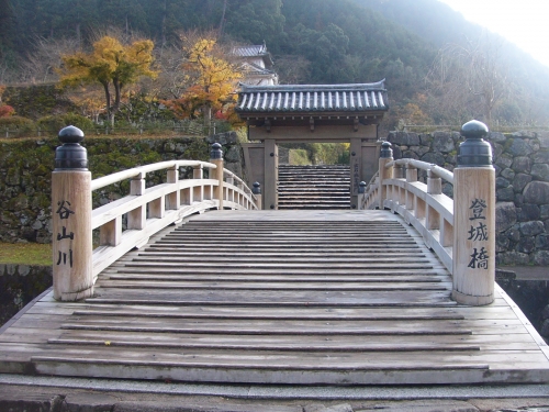 「出石城跡」では、当時のまま残された高い石垣や、復元された隅櫓、登城門、登城橋などが見られます。城跡から直ぐに城下町となっており、町全体が当時の面影を感じさせる印象です。