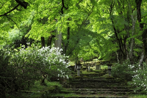 裏庭にあるドウダンツツジが有名なお寺。普段は静かな山里にひっそりと佇むお寺ですが、紅葉の時期になると絶景スポットへと変貌をとげます。