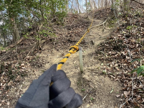 ダム展望コースを進んでいくと、ふじいがわダム方面の展望スポットがあるほか、ロープがはられた急な坂などもあるので、注意して歩を進めていきます。