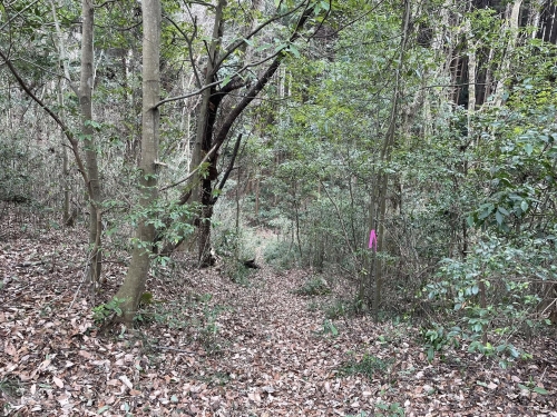 ここをホロル入口方面へと下っていきます。落ち葉に覆われた急な坂を下っていくので、滑らないように注意しましょう。